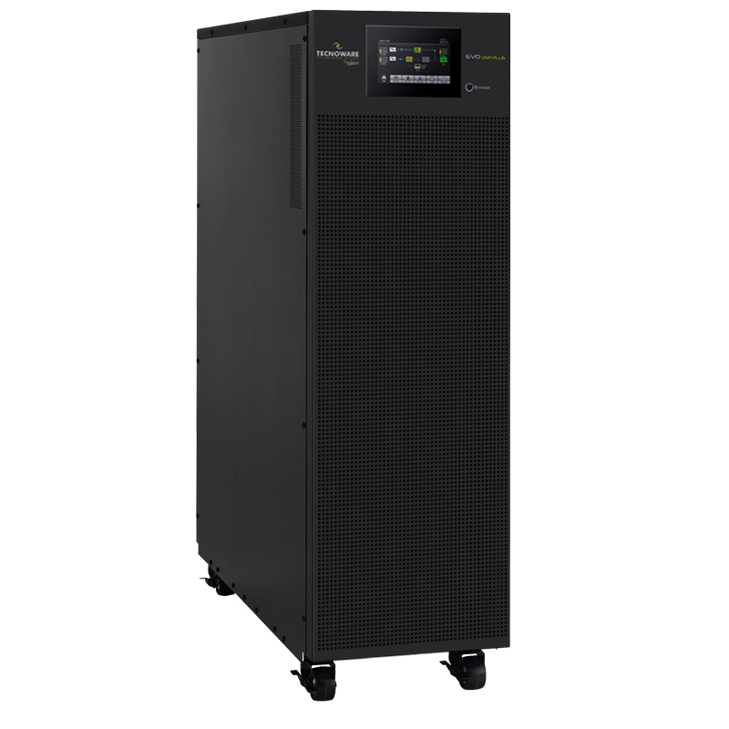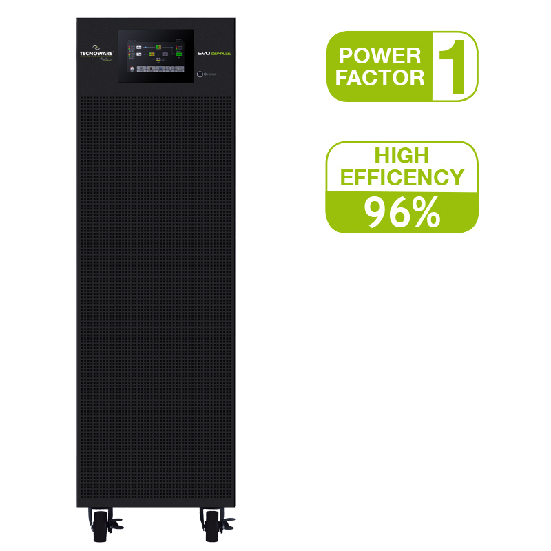 UPS EVO DSP PLUS TT 60.0 – Power 60KVA PF 1. On Line Technology (VFI) DSP, 96% Efficiency, Input / Output 400Vac, 50 / 60Hz, dimensions 30x100x81.5 cm, weight 100 Kg,ready to install battery boxes (optional). Multifunction graphic LCD Touch display, static and manual bypass, Double input Rectifier/bypass EPO contact for emergency shutdown, USB and RS232 communication ports for UPS control and on / off programming via the free TecnoManager software. SNMP, Dry Contact or MODBUS card (optional).