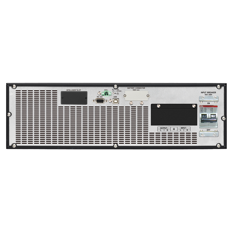 UPS EVO DSP PLUS RACK MOUNT 10.0 – Power 10 KVA PF 0.9. On Line Technology (VFI) DSP, 94% Efficiency, Input / output 230 / 230Vac 50 / 60Hz, dimensions 43.8×13.3×58 cm (3 Rack units), weight 18 Kg, does not include batteries, for bacup time add external battery boxes. Multifunction graphic LCD display, static bypass, EPO contact for emergency shutdown, USB and RS232 communication ports for UPS control and on / off programming via the free TecnoManager software. SNMP, Dry Contact or MODBUS card (optional).